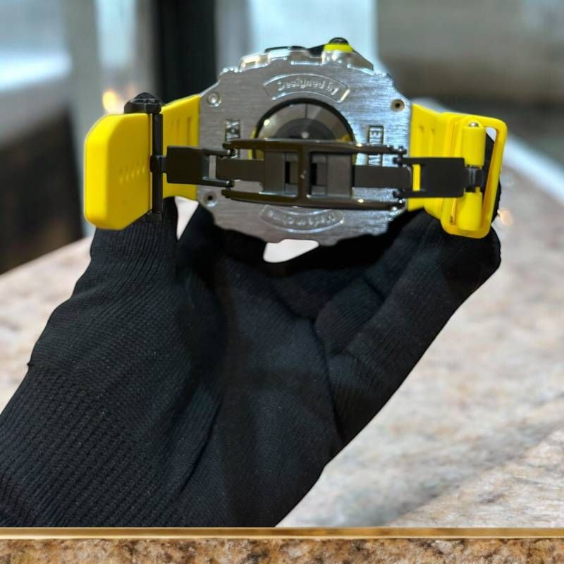 シルバーケース イエローラバー 別注強化型ブラックバックルモデル アップルウォッチ カスタム カバー 保護 46 series 10 11 ベルト