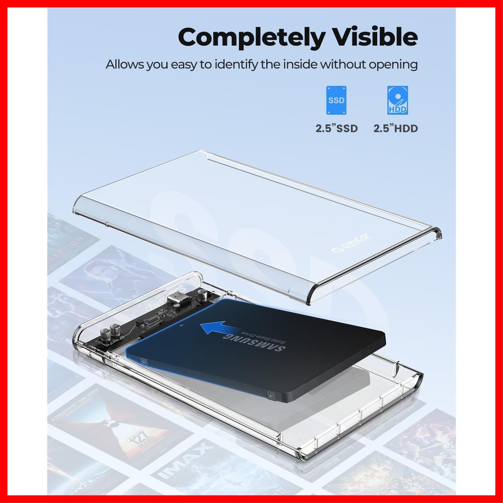 商品 SSD ケース USB C 3.1 HDD GEN 1 ドライブケース 6 Gbps転送 2.5インチ 透明 SATA 3.0 ハードディスクケース Type-C TB 9.5 mm以下 対応 静電気防止 PC材料 ORICO ポータブルHDDケース