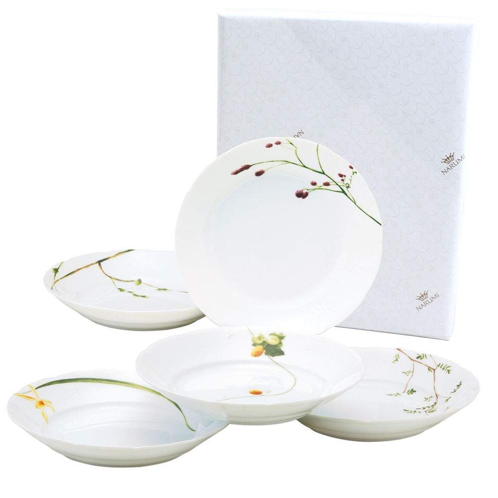 NARUMI ナルミ プレート 皿 セット 里花暦 さとはなごよみ 径21 cm グリーン 花柄 5柄セット 40912 32842 AZ ボウル 径13 328