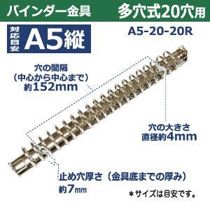 バインダー金具 A 5 20 R 15本入1袋 長さ220 mm 背幅18 背なしタイプ 20穴 鉄 シルバー ニッケルメッキ 5縦 リングノート ビス カシメ リベット 留め バインダー