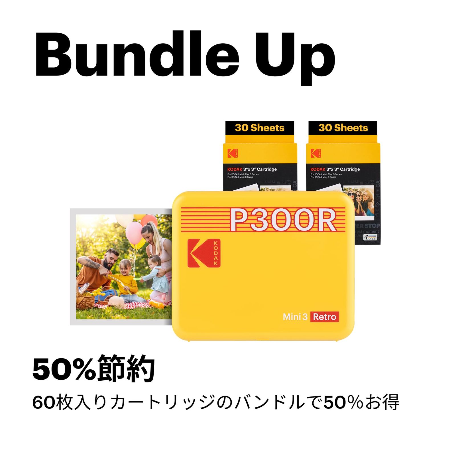 ポータブルフォトプリンター 7.6 cmx cm プリンター本体 入り ホワイト 4 PASS レトロ 3 Mini KODAK コダック