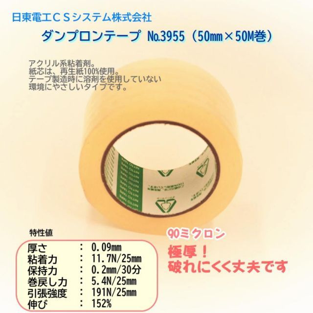 日東電工 ダンプロンテープ No 3955 50 mm M巻 50巻入 重梱包用 OPPテープ 厚手タイプ テープ厚さ0 09