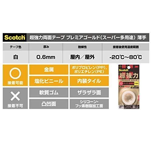 商品名:3Mスコッチ超強力両面テーププレミアゴールドスーパー多用途薄手4m SPU-19