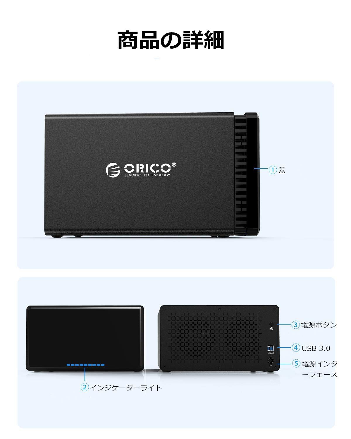 【安定に使用】製品は128W外付け大電源を装備し、ハードディスクにより穏やかな稼働環境と放熱環境を与えます。長時間使用可能で電気不足によるハードディスクの損害を避けられます。ORICOは12ヶ月の期限を持って、ご安心に購入ください。
