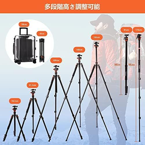 北 ダック カメラ三脚 一脚 一眼レフ スマホ三脚 全高165 cm 一脚伸縮可変式 5段階伸縮 自由雲台 360度回転可 携帯電話ホルダー付き - 運動会 登山 野外撮影用 持ち運びに便利です 黒 オレンジ色 日本語取扱説明書付