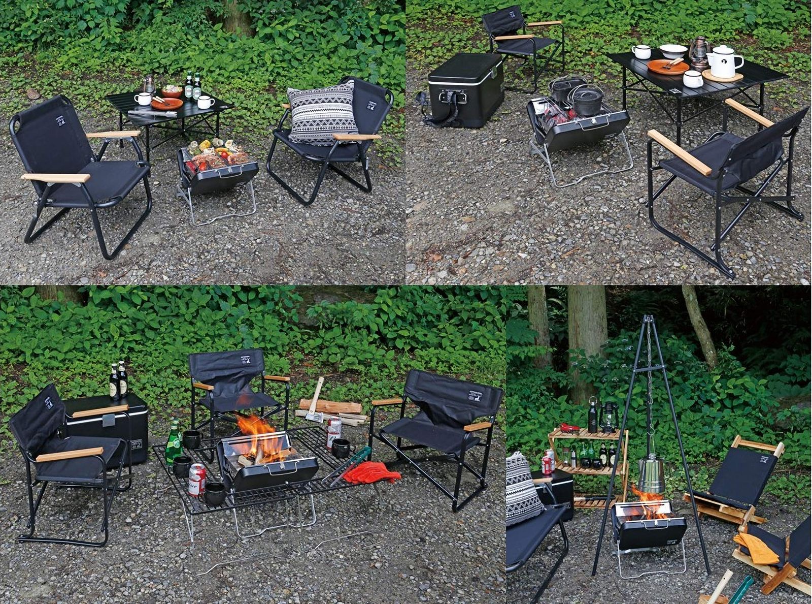 キャプテンスタッグ(CAPTAIN STAG) バーベキューコンロ グリル 焚火台 1台4役 卓上グリル V型ファイアグリル ゴトク2枚付き ワイド ブラック CSブラックラベル UG-77