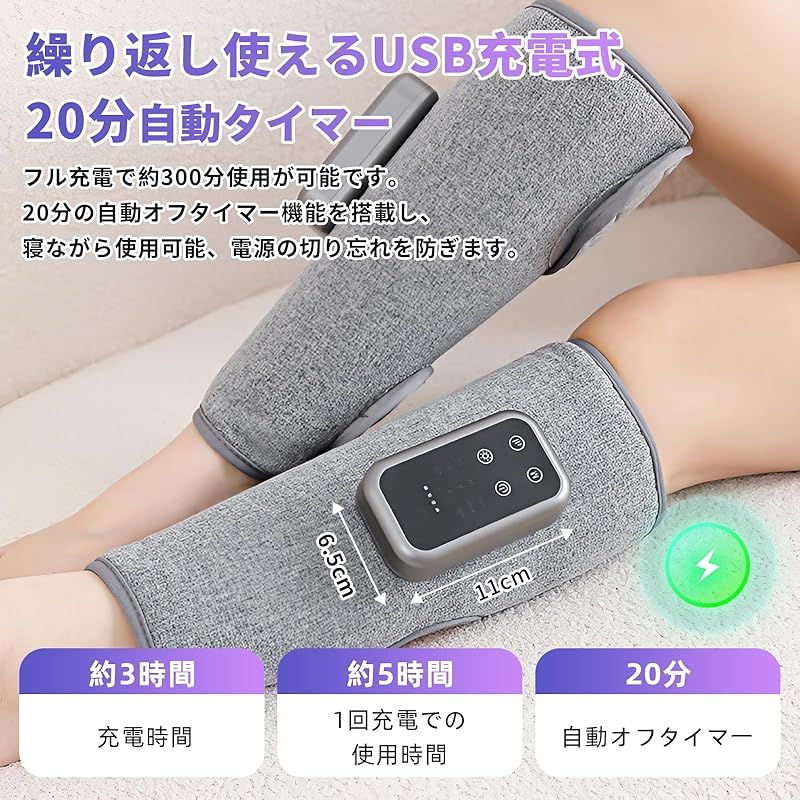 商品名:【2025新登場・空気圧・温熱】ふくらはぎリラックス エアーレッグリラックス 空気圧 温熱 太もも 足ケア Tpye-C充電式 コードレス 3つ空気圧モード 3段階強度 3段階温度 20分自動オフタイマー サイズ幅調節可 操作簡単 運動後/座り仕事/立ち仕事/