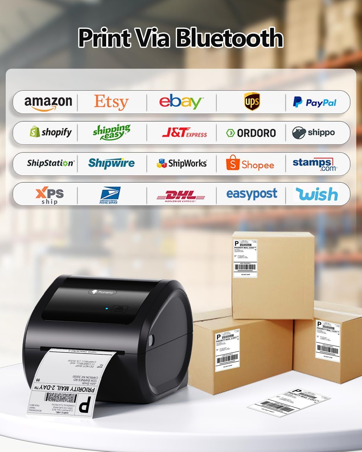 複数のプラットフォームに対応 - Phomemo 203DPIバーコードプリンタは、鮮明でクリアな出荷ラベルを提供します。高速印刷(72ラベル/分)により、生産性が大幅に向上します。ファンフォールドラベルやローラーラベルなど、幅1~4.6インチのラベルに対応し、eBay、Shopify、Etsyなど、主要な販売・発送プラットフォームでのラベル印刷に広く使用されています。