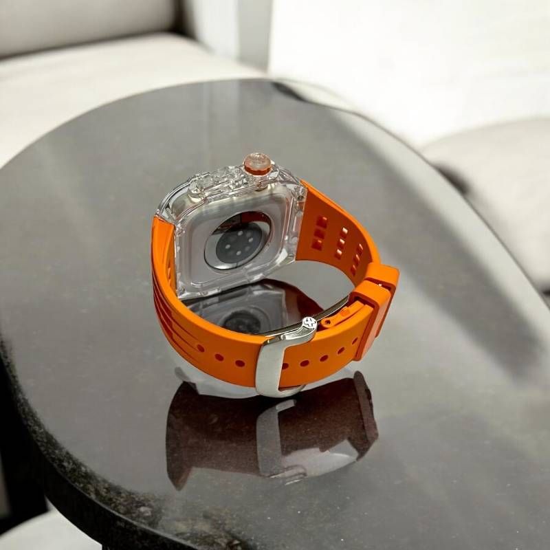 透明感のあるポリカーボネート製スケルトンカバーと、上質なフッ素ラバーベルトを組み合わせたApple Watch用セット。