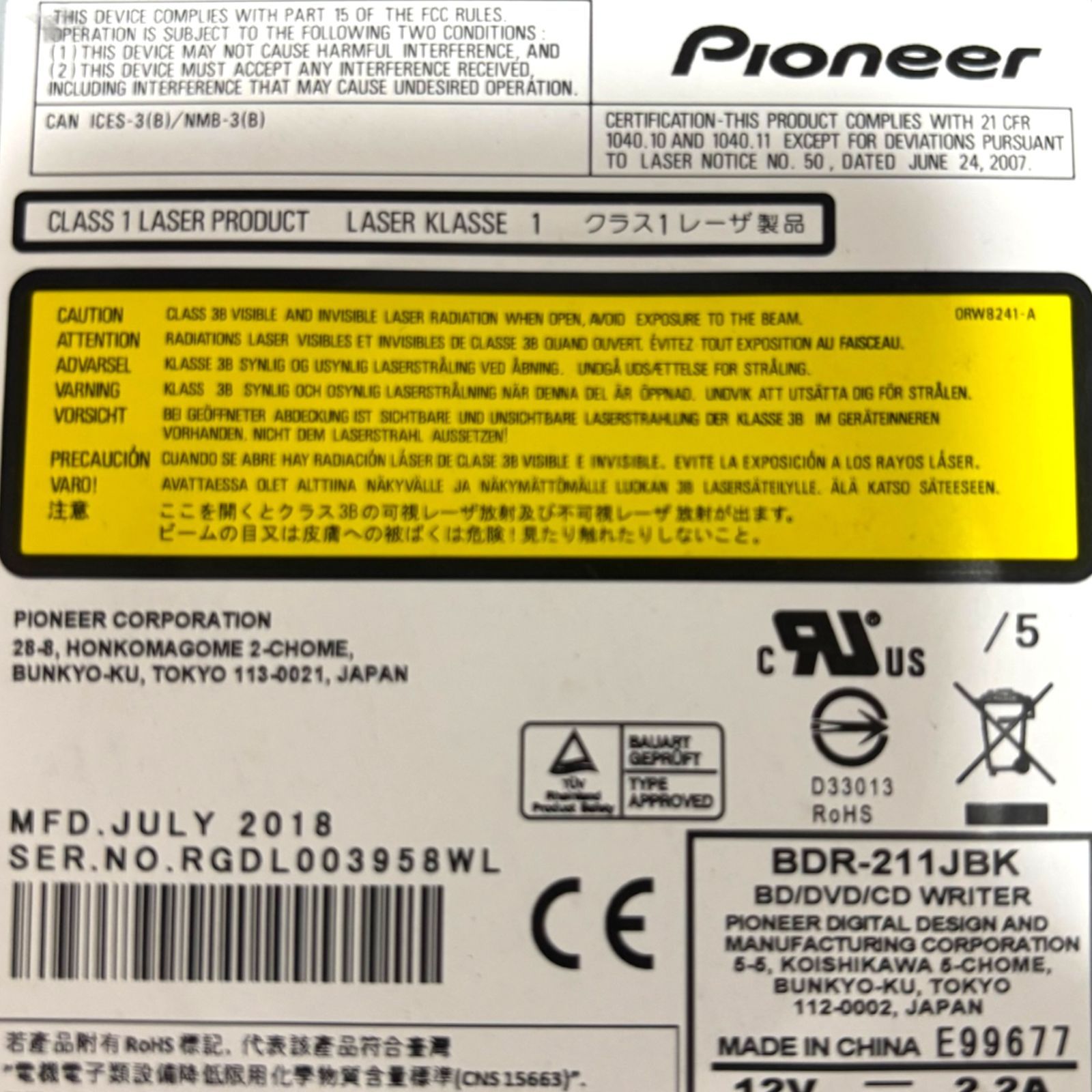 管理番号2675 Pioneer パイオニア BDR-211 JBK