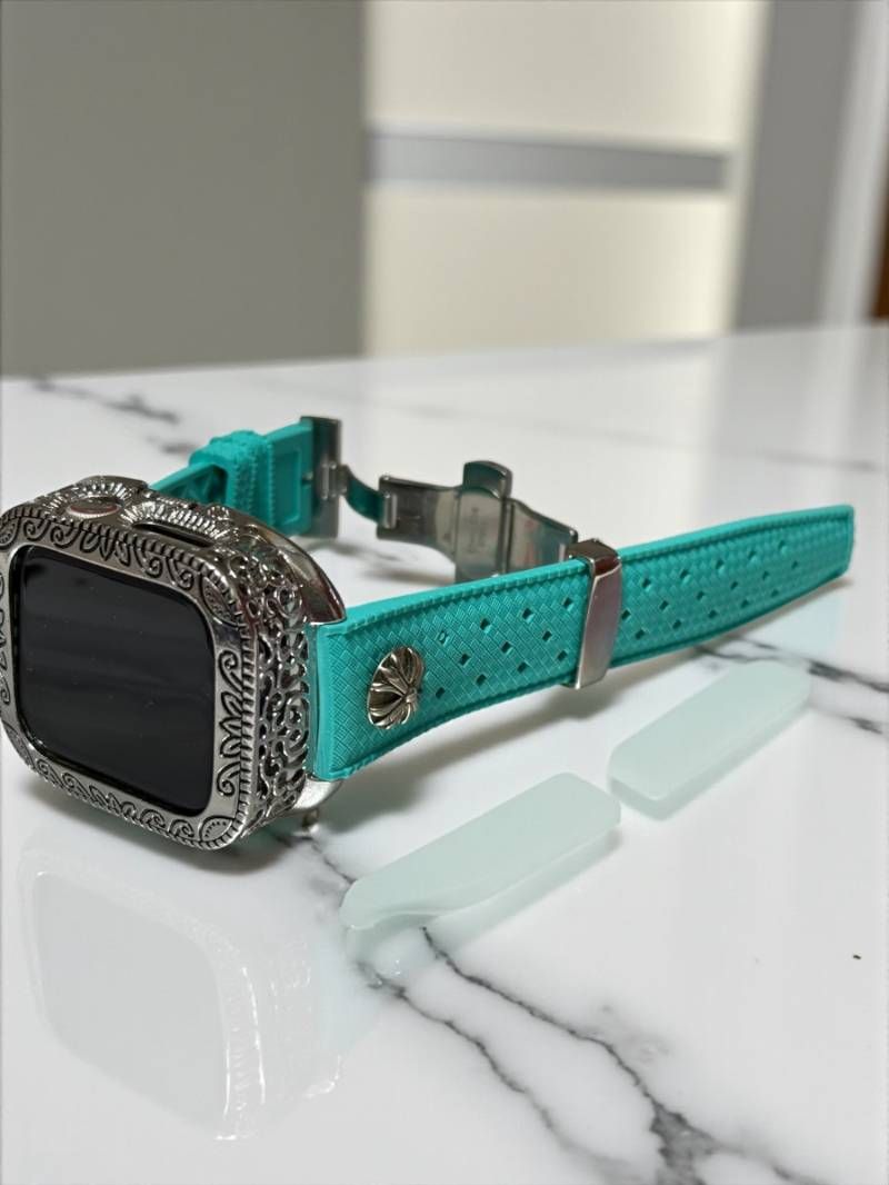 重厚感あふれる彫刻調デザインのメタルカバーと、耐久性・快適性に優れたZEEPフッ素ラバーバンドを組み合わせたApple Watch用カスタムセットです。