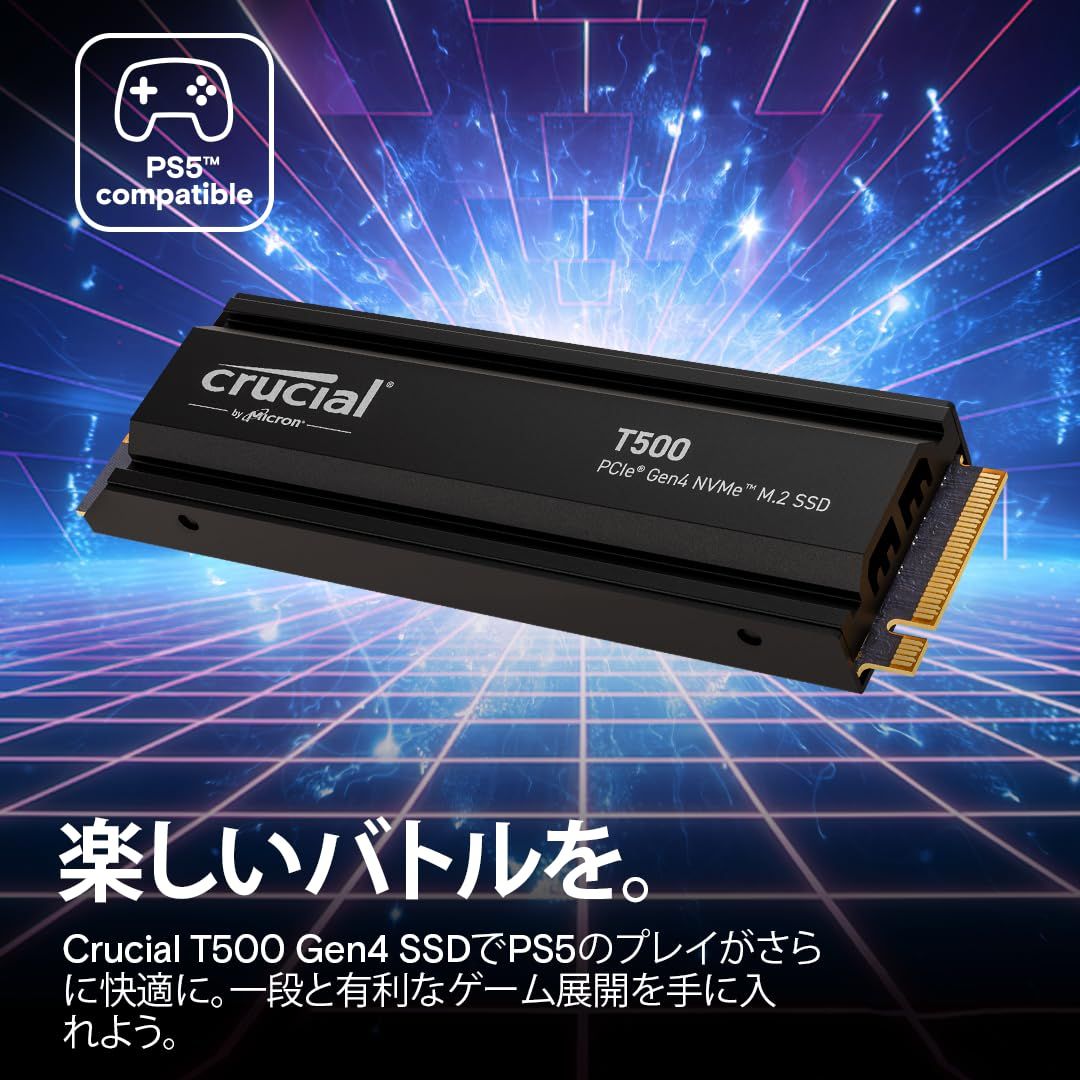 Crucial(クルーシャル) T500 ヒートシンク付き 【新型PS5 / PS5動作確認済み】 2TB SSD PCIe Gen 4 (最大転送速度 7400MB/秒) NVMe M.2 (2280) 内蔵 5年 CT2000T500SSD5JP 国内正規品