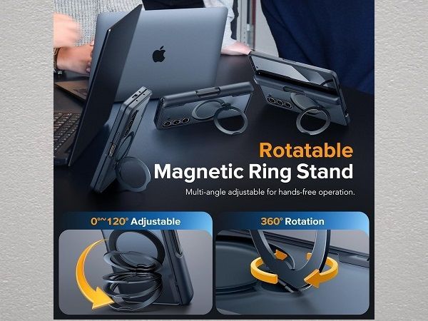 MOBOSI for Samsung Galaxy Z F 6 ケース Magsafe対応 リングスタンド ブラック スクリーンプロテクター内蔵 Sペンホルダー付