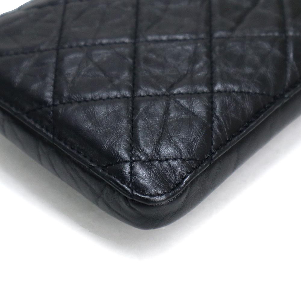 シャネル 2.55 マトラッセ チェーンショルダー スマートフォン スマホ 携帯 ケース ポーチ 斜め掛け カーフスキン レザー ブラック アンティークゴールド金具 AP 1264 CHANEL