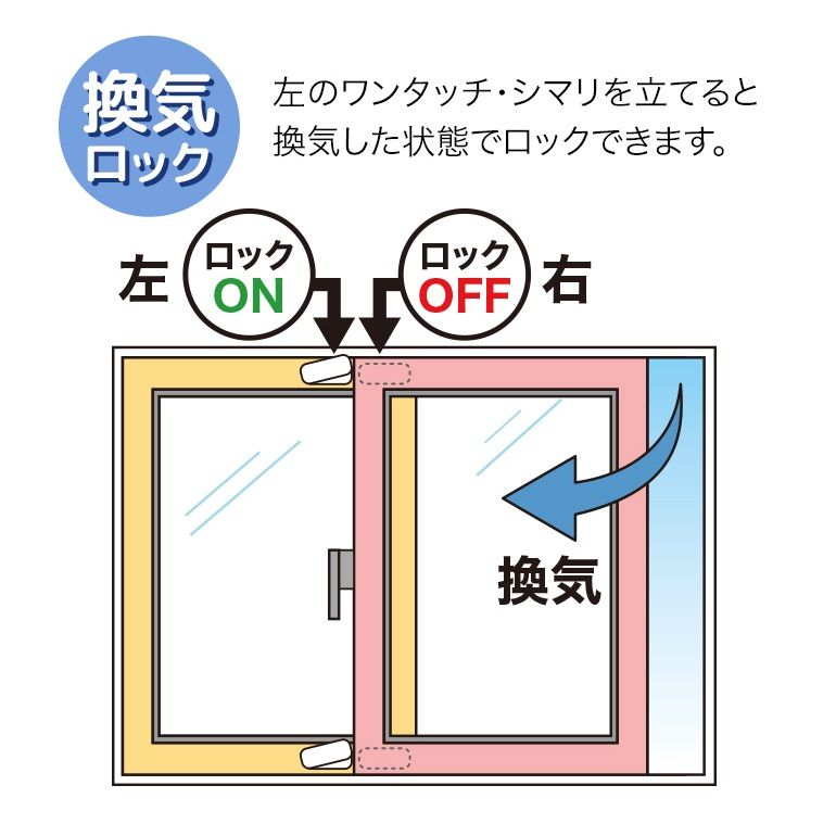 ◎横に並べて使えば窓を少し開けた状態で施錠できます