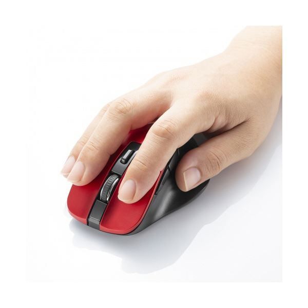 ●握りやすい形状で中型サイズのワイヤレスマウス。カラーはレッドです。