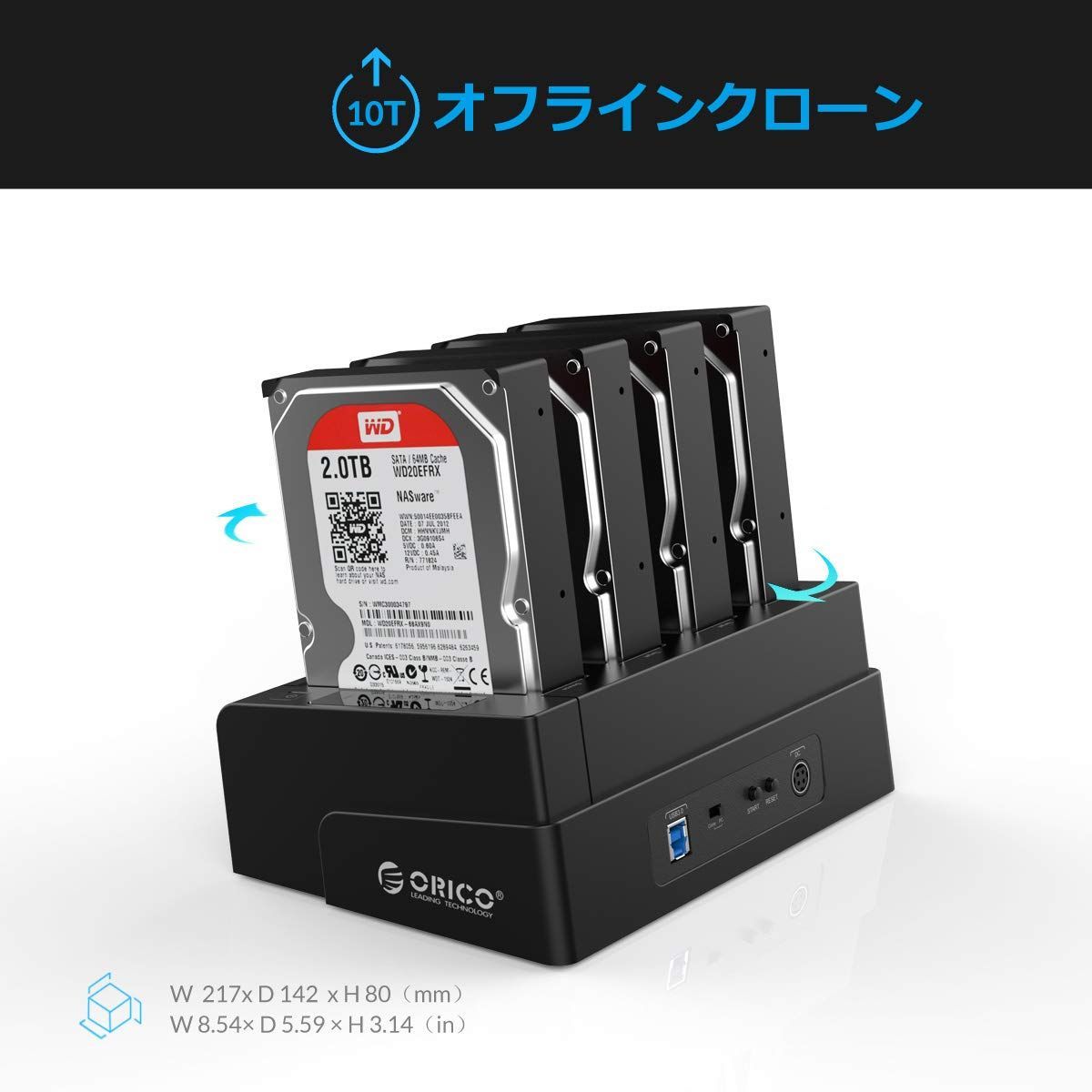 ORICO USB3.0 HDDケース クローン機能付き 2.5 / 3.5インチ SATA HDD/SSD 対応 4ベイ ハードディスクケース 工具不要 10TB*4台対応 電源アダプター付 ブラック 6648US3