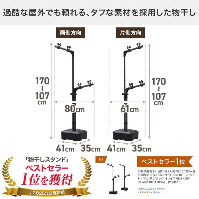 スタイル:21_PSBK-13(幅35×奥行80×高さ107-170cm)◆商品名:天馬洗濯物干し屋外物干し台物干しブロー台付簡単組立風に強いサビにくい物干しスタンドベランダブラック【サイズ幅35×奥行80×高さ107-170cm】【PSBK-13】
