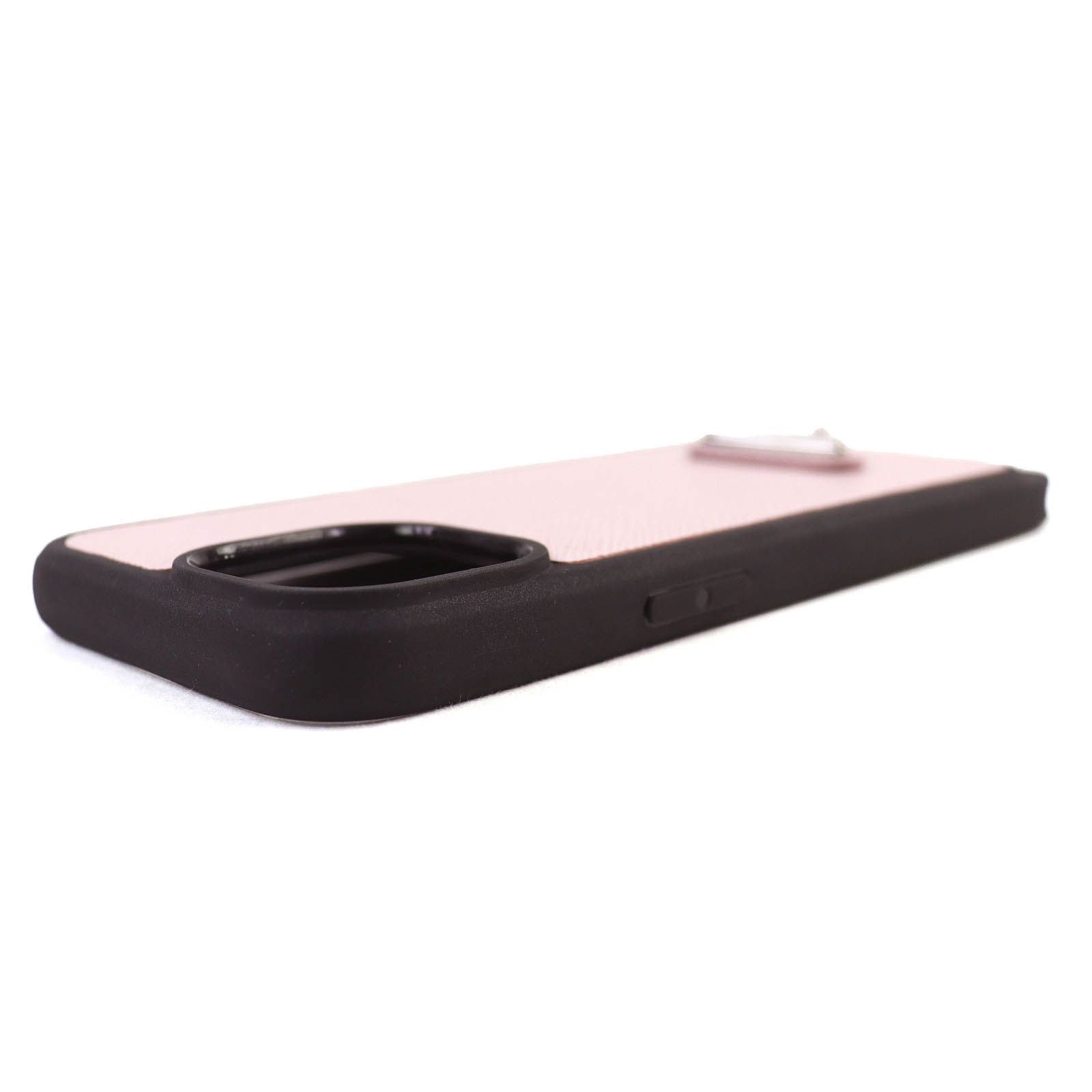 PRADA プラダ サフィアーノレザー トライアングルロゴ ショルダーストラップ付属 iPhone 15ケース スマホケース ピンク ブラック き レディース
