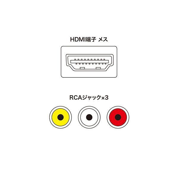 インターフェース:入力用:HDMIタイプA(19pin)メス×1、出力用:コンポジット映像出力×1、アナログ音声出力(RCA)×2