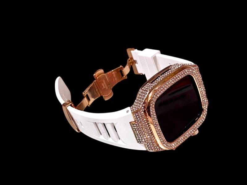 アップルウォッチケース 互換性対応 カスタム カバー 保護 ギフト 44 42 45 46 キラキラ ベルト Apple Watch バンド セット series 4 5 6 7 8 9 10 11 ローズホワイト