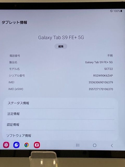使用少 Galaxy Tab S 9 FE 5 G SCT 22 グレー 12.4インチ 128 GB|8 GB G対応タブレット au SIMフリー 送付無料