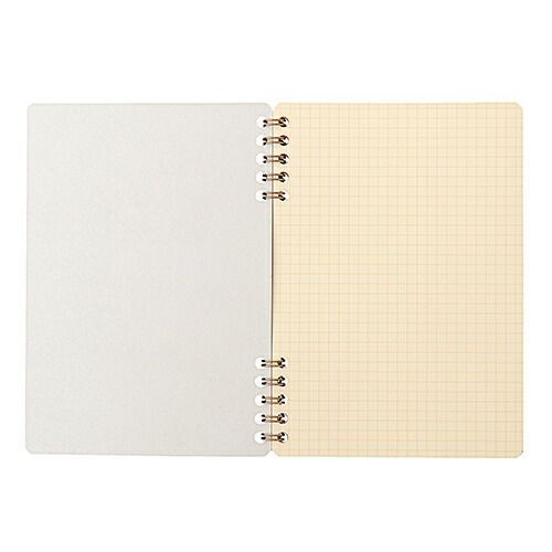 クリーム色の本文紙にうす茶色の罫線で、カラーインクとのコーディネートと楽しんでいただけるリングノートです。上下に分かれたスキップリング製本で筆記時に手が当たりにくく、四方を角丸仕上げにすることで鞄や手にひっかかりにくい仕様。60枚という枚数も程よいボリュームで、持ち運びにおすすめです。人気の色罫線シリーズ「バーミリオン」「ピスタチオ」の姉妹品で、表紙のデザインは1950年代頃から使われていたライフのカタログをモチーフとしています。【検索ハッシュタグ】#ライフ#リングノート#ノート#シナモン#方眼