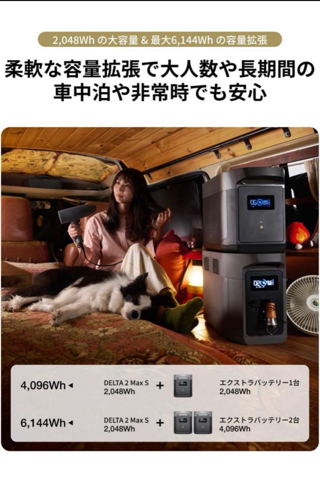 - バッテリー容量: 2048Wh(最大6144Wh)