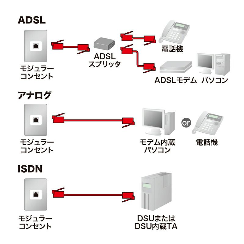 ※NTT端子結線準拠でない6極2芯の機器には使用できません。。