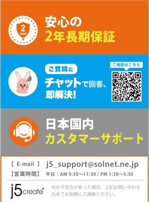 【安心2年、国内サポート】 電話、メール、チャット 国内サポート