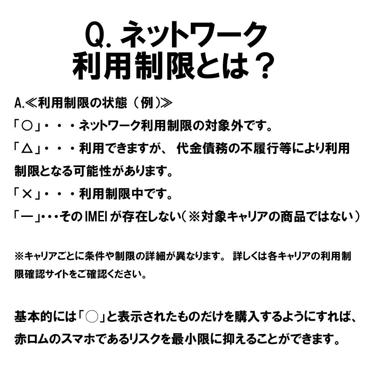 赤ロム永久保証:万が一ネットワーク利用制限が発生しましたら同等の商品と交換あるいは代金全額返金を致します。