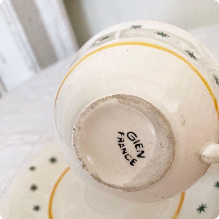 フランス直輸入 イエローのラインとグリーンの星柄が可愛らしい ヴィンテージ GIEN カップ&ソーサー