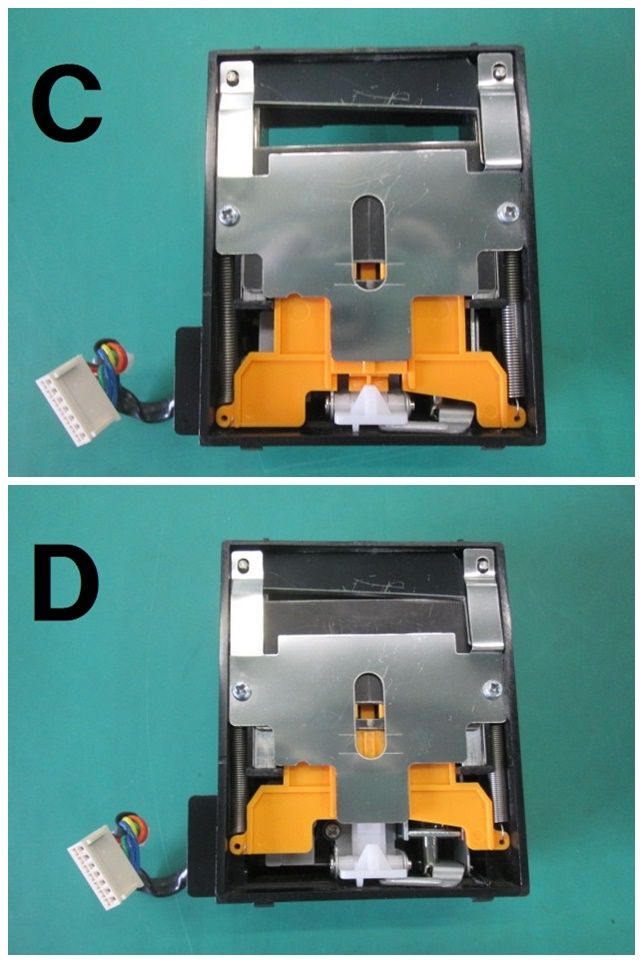 橙の部品及び上部の刃を下げます。