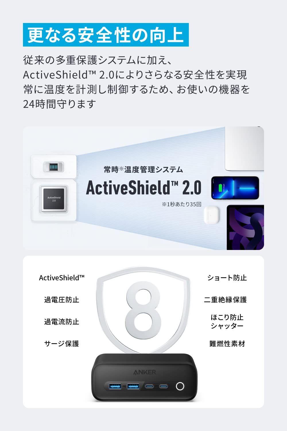 急速充電可能な2つのUSB-Cポート:USB-Cポートは2ポート同時使用時に合計最大65W出力で、iPhoneやMacBook Airを2台同時に急速充電できます。