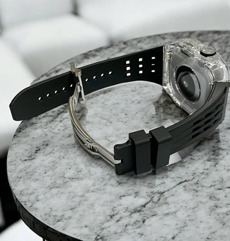 透明感のあるポリカーボネート製スケルトンカバーと、上質なフッ素ラバーベルトを組み合わせたApple Watch用セット。