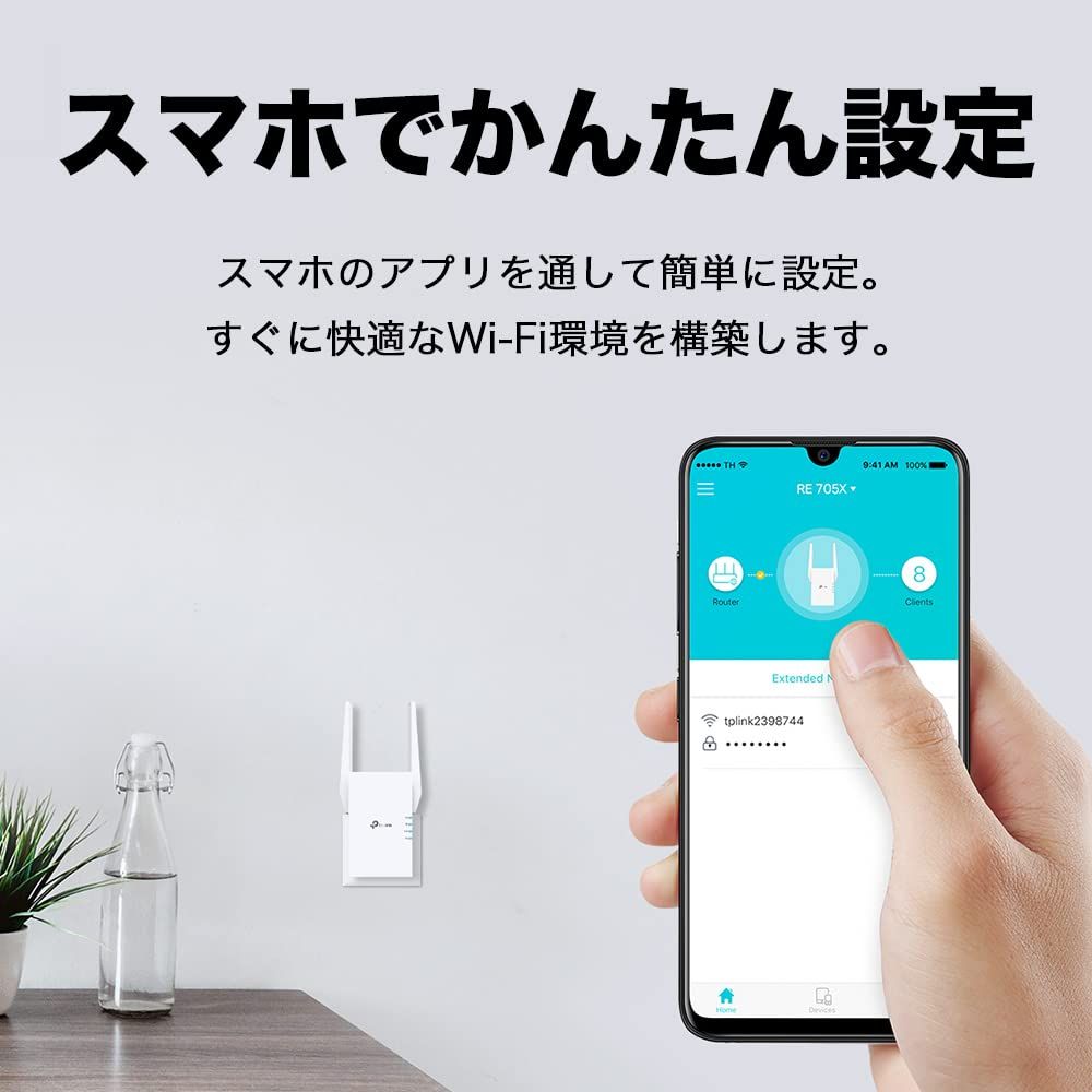 [特徴] 外部アンテナ搭載の超高速Wi-Fi中継機 。5GHz:2402 Mbps + 2.4GHz 574 Mbps[HE160対応]
