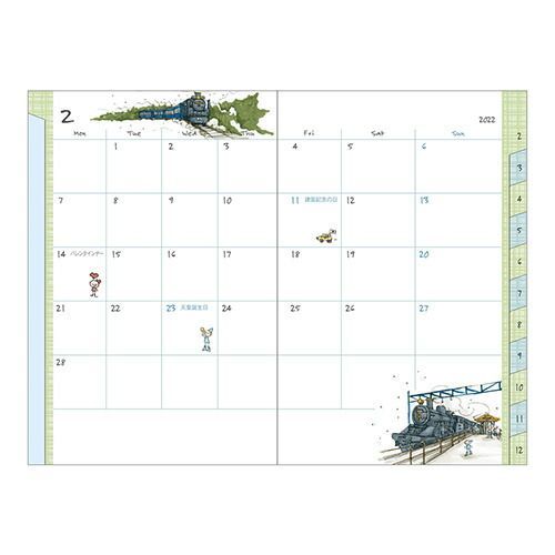 『ポケットダイアリー』は、女性の日常を楽しく彩るダイアリーシリーズとして1985年に誕生しました。お好みで選べる豊富なサイズとデザインで、今日まで多くの方々にご愛用いただいています。表紙カバーの柄のみを変更し、中紙は共通のフォーマットを使用している手帳が多い中、本シリーズは、毎年デザイナーが新規でページごとに異なるイラストやデザインを制作し、ページをめくる楽しさやワクワク感を盛り込んでいるのが特徴です。ミニサイズは、持ち運びやサブ手帳としても便利です。小さいながらも糸かがり製本で高品質なつくりをしています。ページがめくりやすい角丸加工を施しています。最初の1月には、干支にちなんだ「のりもの」を採用。2022年はサファリパークをイメージしたトラバスです。本物のトラもいます。その他の月は季節に合わせた、楽しい「のりもの」がたくさん描かれています。のりもの柄にでてくる、スポーツ万能で、どんなのりものも乗りこなせる、怖いもの知らずな人たち。全ページ書き下ろしの柄なので、さまざまな乗り物に乗る「彼ら」の中には1人として同じ人はいないです。そんな彼らと楽しい1年をお過ごしください。本文に使われている「MD用紙」はにじみや裏抜けがしにくく、書き味の良さを追求し続けているオリジナルの筆記用紙です。【検索ハッシュタグ】#ミドリ#デザインフィルミドリ#ダイアリー#手帳#スケジュール#スケジュール帳#ジャーナル#年末品#日付品#2022#ポケットダイアリー#ミニ#のりもの