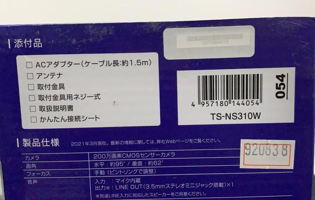 アイ オー データ ネットワークカメラ TS-NS 310 W 920838