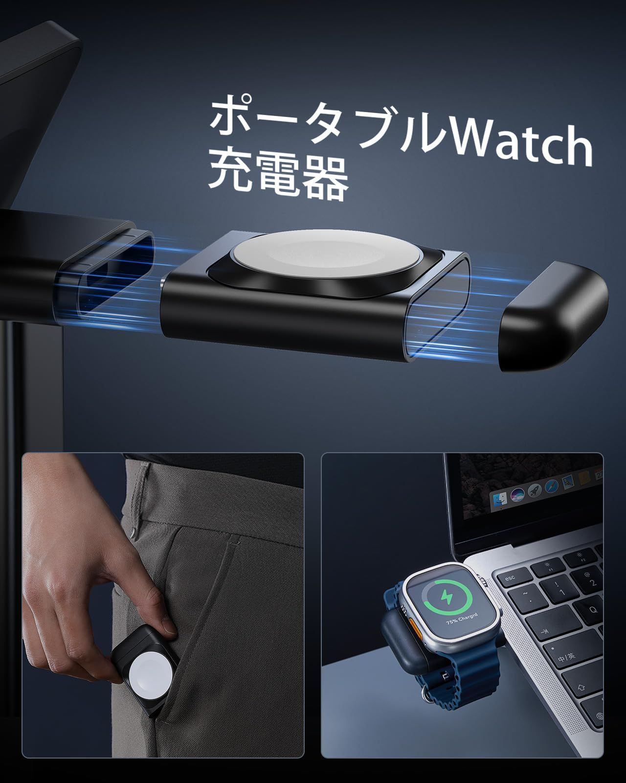 【3in1マグネット充電】iPhone、AirPods、Apple Watchを同時充電。iPhone 17/16/15/14/13/12シリーズ、AirPods 4 with Active Noise Cancellation、 Apple Watch Ultra、Apple Watch 8/7/6/5/4/3/2/1シリーズ、Apple Watch SE 2/1に対応。