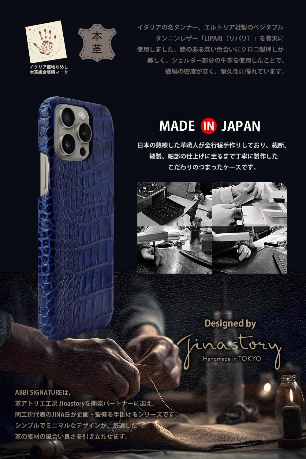 【日本の熟練職人によるハンドメイド】革のアトリエ工房として定評のあるJinastory・ジナさんが企画・監修を手掛けています。