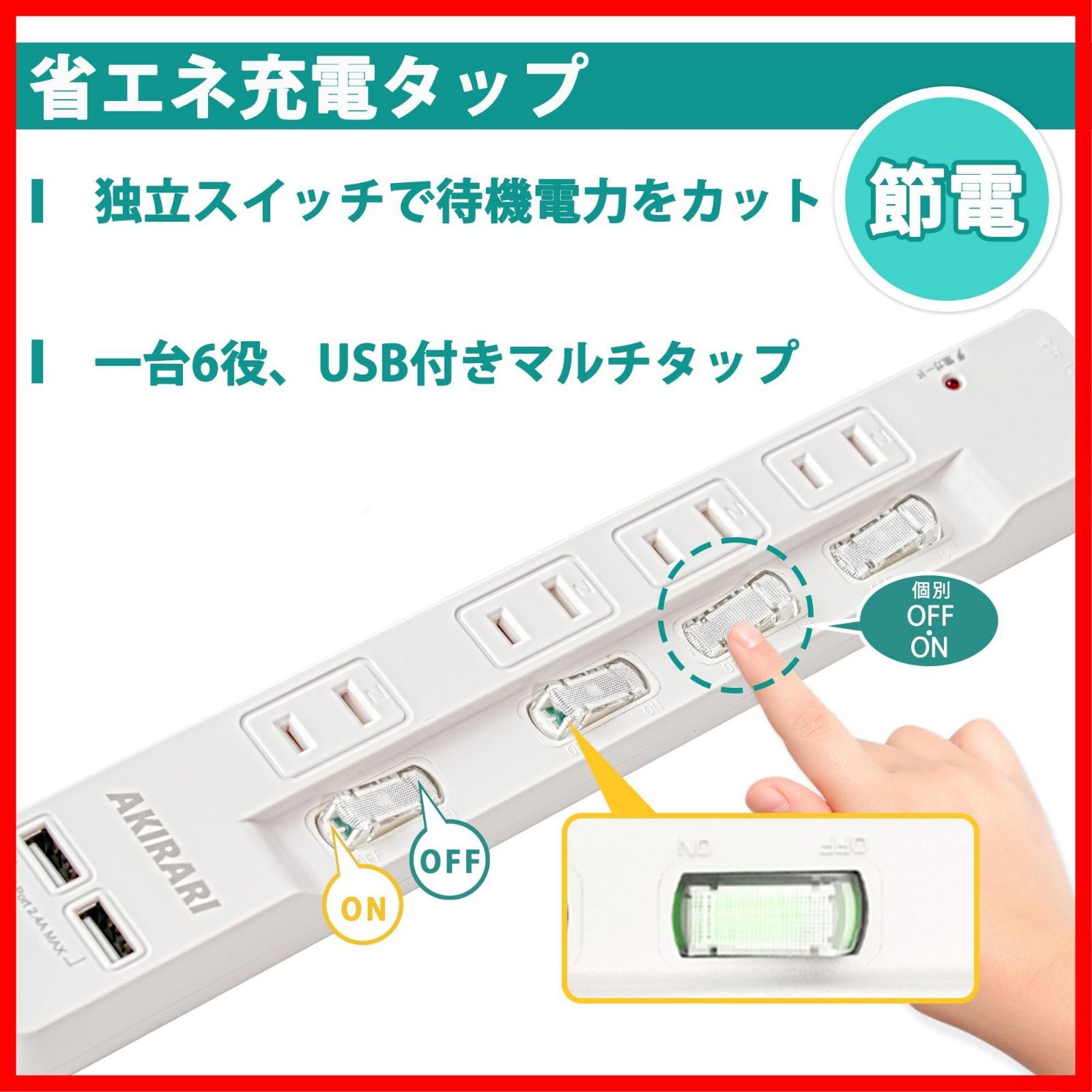 特徴 usbポート 省エネ 個別スイッチ コンパクト ほこりシャッター付 雷ガード