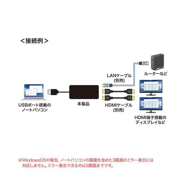 サンワサプライ USB 3.1-HDMIディスプレイアダプタ 4 K対応 2出力 LAN-ポート付き USB-CVU 3 HD