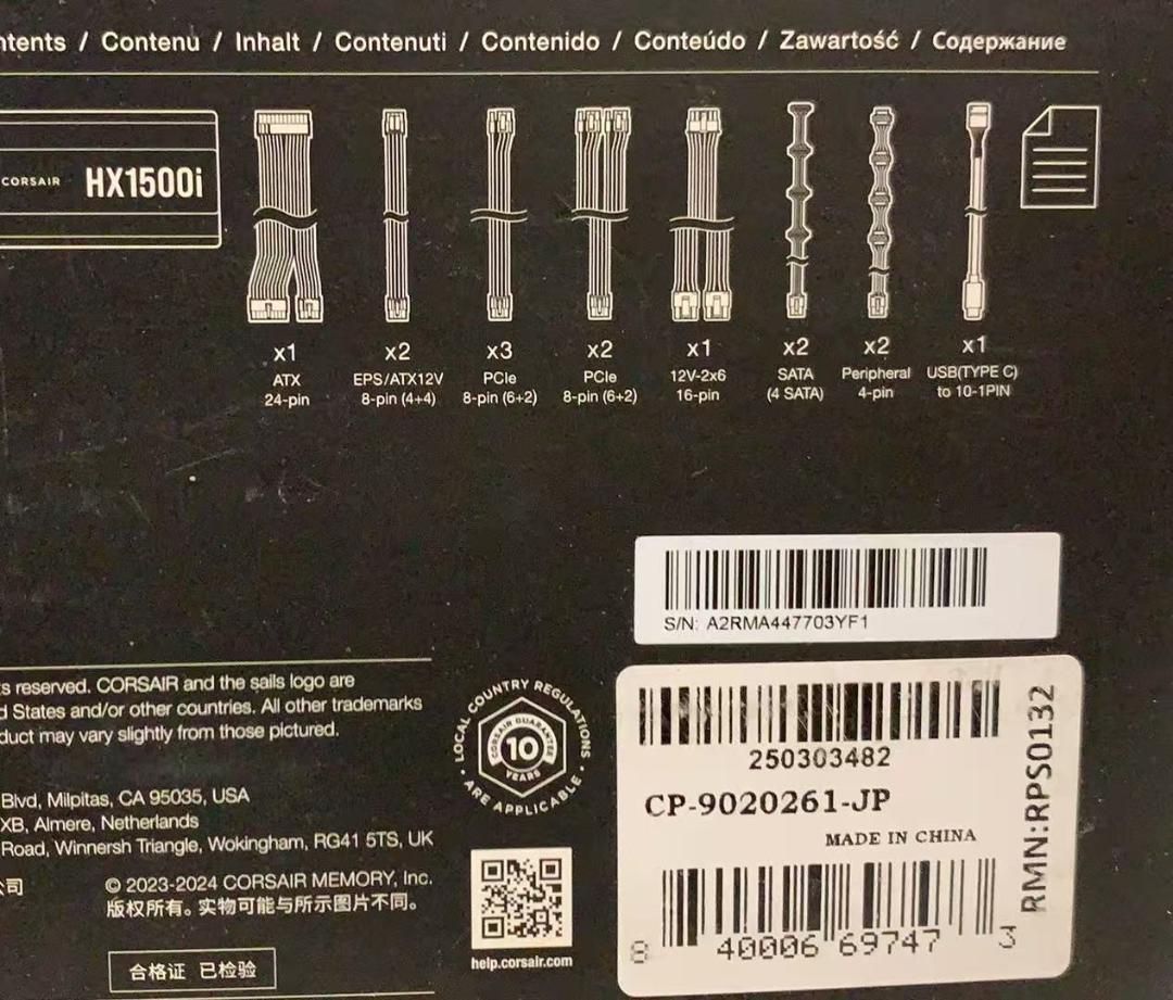 CORSAIR Corsair HX1500i ATX 3.0 certified with 12VHPWR cable 1500W PC電源ユニット CP-9020261-JP