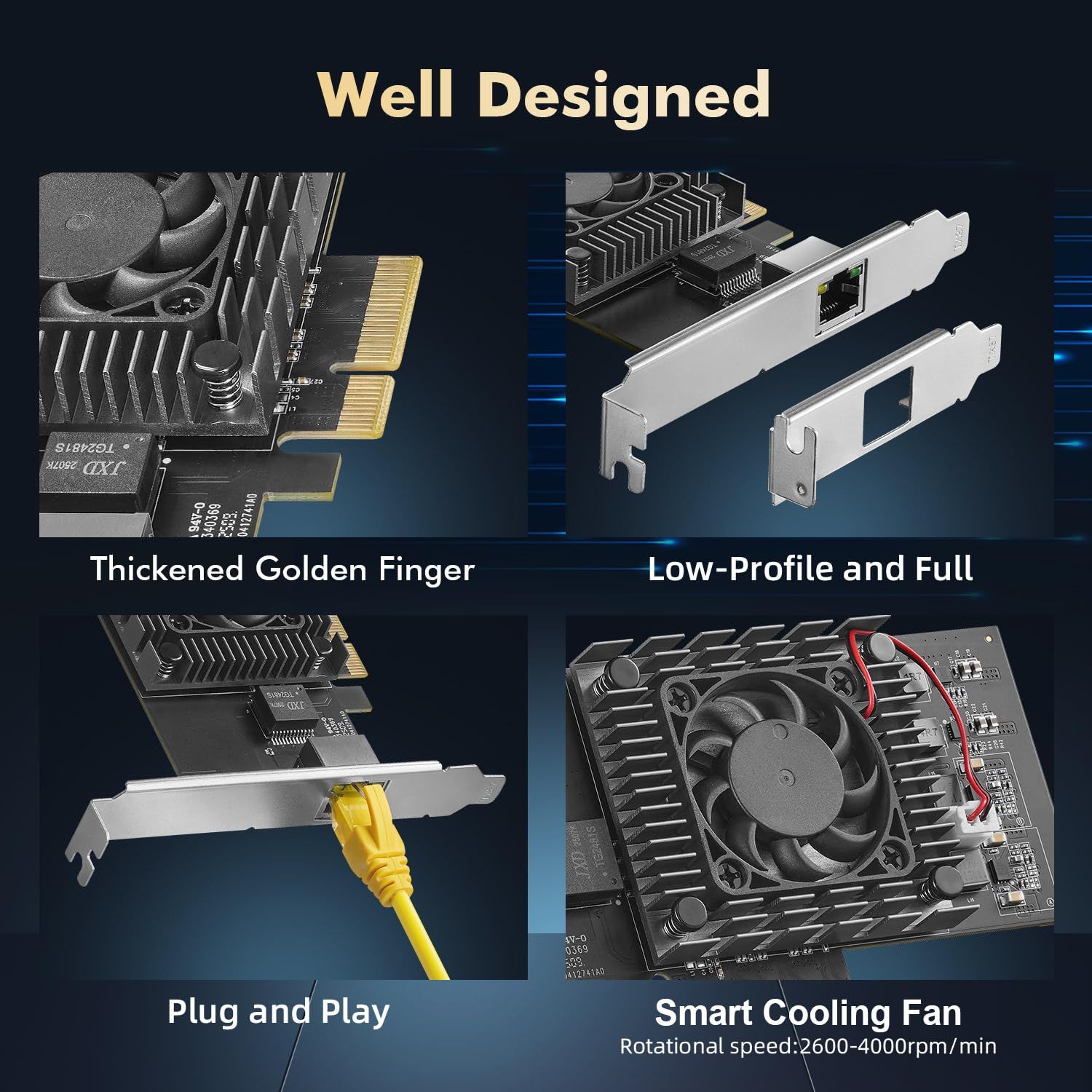 【マルチOS】Windows11/10/8.1/7/Server2016,2012,2008,Linux対応、ドライバダウンロードフリー、CD-ROM、Intel公式ウェブサイトから簡単にドライバをダウンロードできます。産業グレードのインテリジェントな速度制御ファン、ノイズは18dBA以下、より良い放熱と長寿命動作