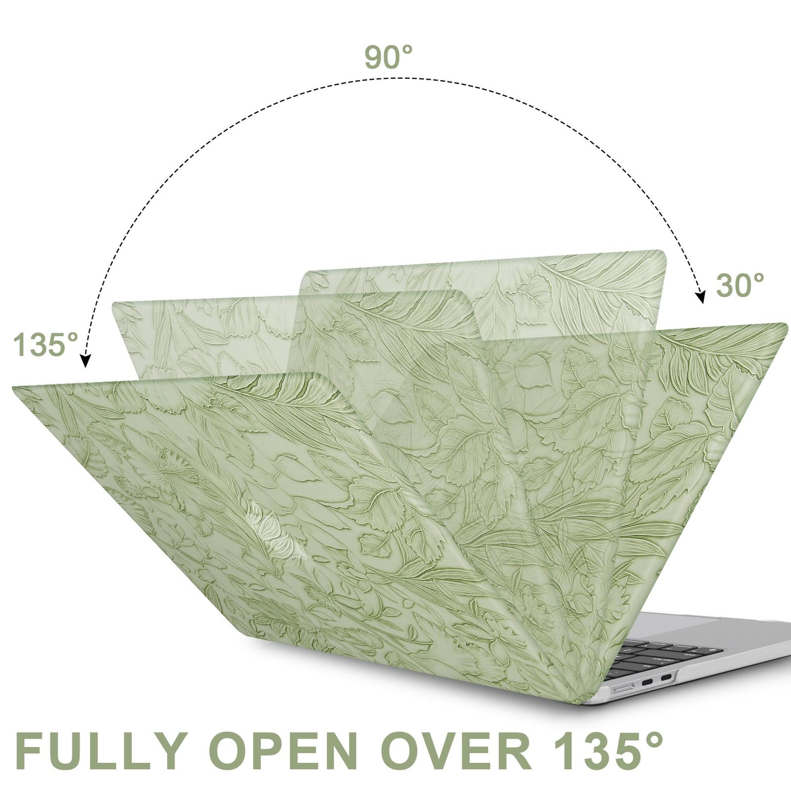 iPAPA MacBook Air 13インチケース 2025 リリース M 3 A 3113 2 2681 エレガントな質感のレザーハードシェルケース キーボードカバー 1 グリーンエンボスフローラル