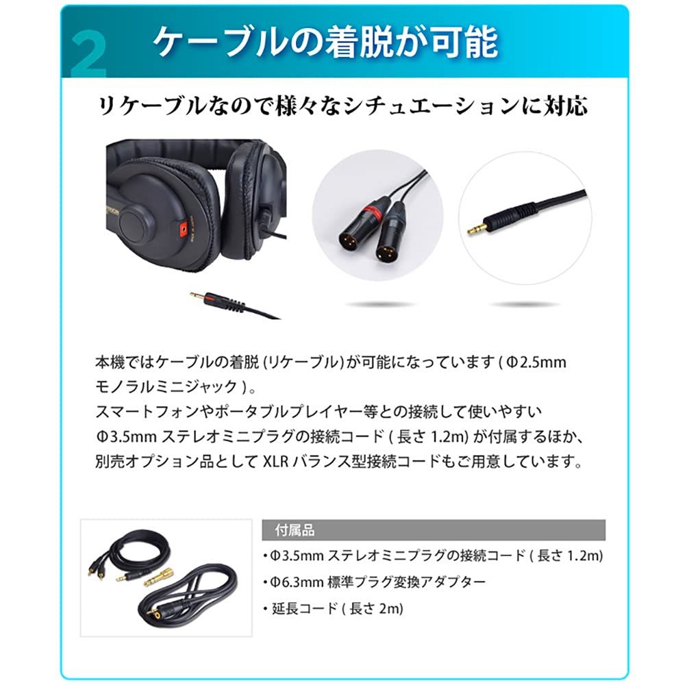 SOUND WARRIOR リスニング ヘッドホン プロユース 密閉型 | 2.5mm 3.5mm 6.3mm 軽量 有線 ケーブル着脱式 再現 音楽 日本製 SW-HP20-B-SD