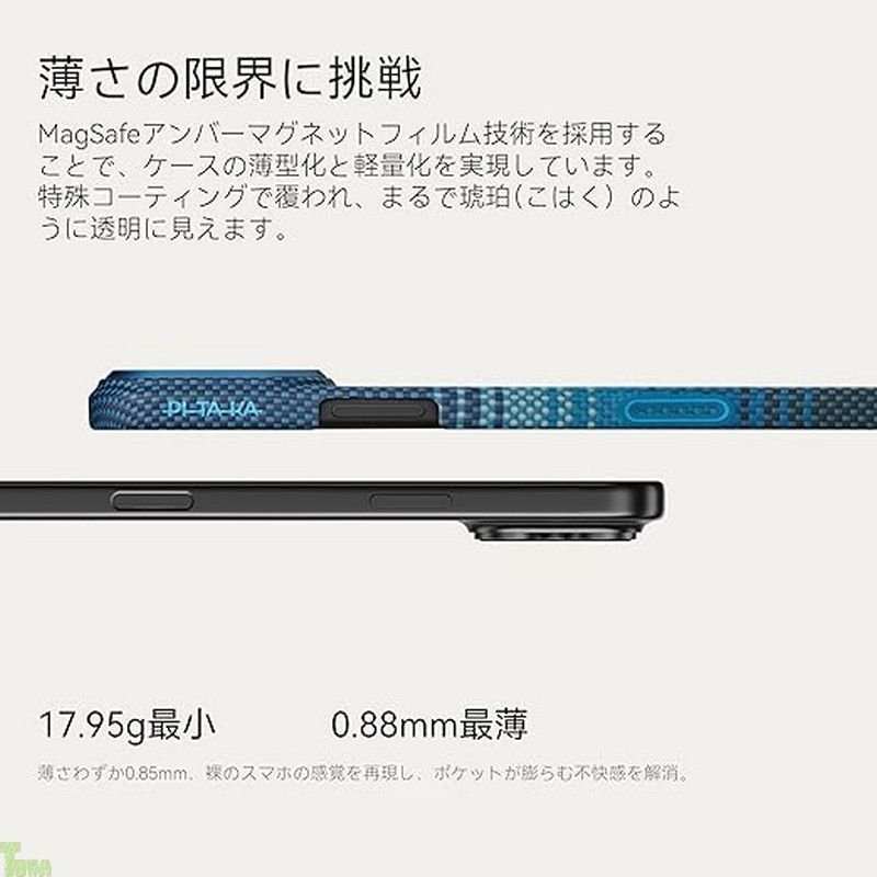 薄 軽量 PITAKA iPhone 17 Pro用ケース MagSafe対応 アラミド繊維製 黄ばみ防止 浮織工芸 上下フルカバー 耐衝撃 薄型 おしゃれ Ultra-Slim Case Moonrise a