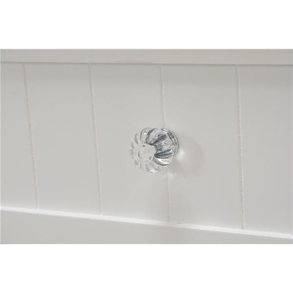 使いまわしの良いランドリーチェスト。クリスタル調取っ手が引き立ちます。