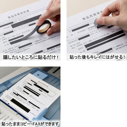 書類などの部分的な目隠しに!好きな長さに切って使える、黒い目隠しテープです。