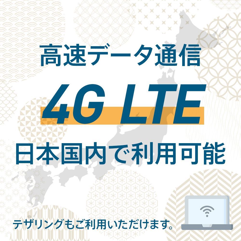 高速データ通信 4G LTE 日本国内で利用可能。テザリングご利用いただけます。